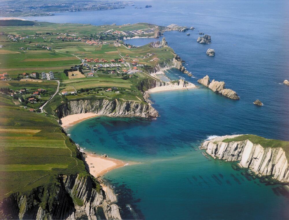 La costa cantabrica è un continuo alternarsi di promontori e spiagge incastonate come conchiglie tra le rocce. L’aria sa di salsedine e di eucalipto, e il vento che soffia quasi ogni giorno sembra avere una voce propria. L’ambiente è sorprendentemente verde: prati che arrivano fino alla sabbia, scogliere che si tuffano nel blu profondo, piccoli sentieri che conducono a calette segrete.