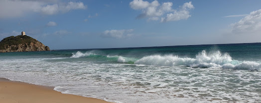 Lo spot di Chia si trova nella Sardegna sud-occidentale, nel territorio di Domus de Maria, lungo il tratto di costa compreso tra Sa Colonia, Monte Cogoni e Cala del Morto. Dal punto di vista geografico questa sezione di litorale appartiene al Sud della Sardegna, storicamente e localmente identificato come Sulcis. La costa in questo punto presenta una baia ampia e aperta, delimitata da promontori rocciosi che la separano da altri sistemi di spiagge adiacenti. L’esposizione reale dello spot è prevalentemente sud-ovest. La linea di costa guarda direttamente verso il mare aperto in direzione sud-ovest, permettendo allo swell proveniente da questo quadrante di entrare in modo diretto e pulito. Funzionano anche le mareggiate da sud, mentre lo swell da sud-est entra più filtrato e tende a perdere consistenza. Gli swell da est ed est-sud-est sono generalmente inefficaci, mentre quelli da ovest puro risultano spesso disturbati o troppo angolati. Chia è un beach break sabbioso con fondale prevalentemente uniforme, anche se in alcuni tratti possono essere presenti banchi leggermente più duri o affioramenti isolati, soprattutto verso le estremità della baia. Le onde tendono a formarsi su più picchi mobili, con aperture sia a destra che a sinistra. Le sezioni sono spesso veloci e talvolta chiudono rapidamente quando lo swell cresce troppo o il periodo è elevato. Le condizioni migliori si presentano con swell di taglia piccola o media, tra mezzo metro e un metro e mezzo, con periodo medio. Il vento gioca un ruolo fondamentale. Le condizioni ideali si hanno con vento da nord, nord-est o nord-ovest, che soffiano offshore o side-off rispetto alla spiaggia. I venti da sud e sud-ovest rendono rapidamente il mare disordinato. Il periodo migliore per surfare va dall’autunno alla primavera, quando le mareggiate da sud e sud-ovest sono più frequenti e il vento termico è meno presente. L’accesso allo spot è relativamente semplice. Si raggiunge in auto percorrendo la strada costiera che collega Domus de Maria a Chia. Sono presenti parcheggi sterrati e aree di sosta nei pressi delle spiagge principali. Dalle zone di parcheggio si accede alla spiaggia a piedi tramite brevi sentieri o passaggi diretti sulla sabbia. Le temperature dell’acqua variano sensibilmente durante l’anno. In estate il mare si mantiene intorno ai 22–25 gradi, consentendo l’uso di mute leggere o lycra, mentre in inverno la temperatura scende intorno ai 14–16 gradi, rendendo necessaria una muta 3/2 o 4/3 nei mesi più freddi. Chia è uno spot adatto a surfisti di livello principiante e intermedio, con spazio sufficiente per distribuire il crowd, soprattutto fuori dall’alta stagione.