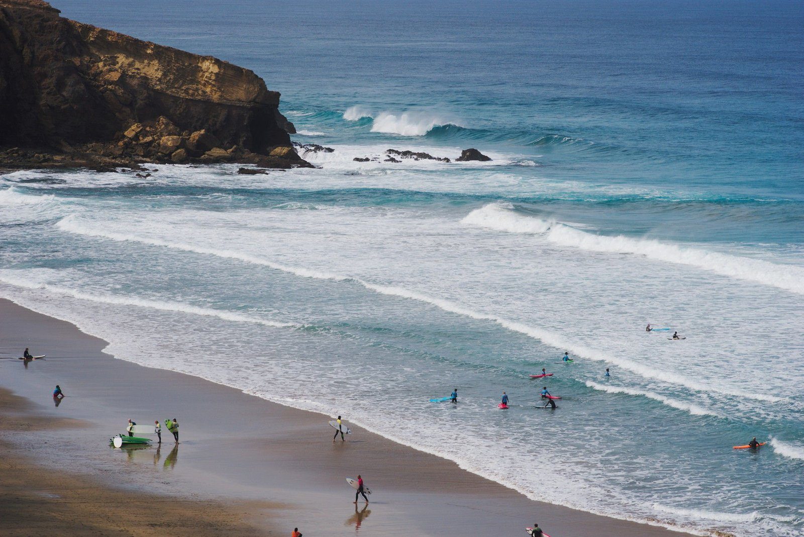 La Pared, conosciuta anche come Playa del Viejo Rey, è una delle spiagge simbolo del surf nel sud di Fuerteventura, in Spagna (Isole Canarie). Si trova sulla costa ovest, nel punto più stretto dell’isola, a pochi chilometri dalla turistica Costa Calma sul lato est. Si raggiunge facilmente percorrendo la FV-605: dalla rotonda di Costa Calma si seguono le indicazioni per La Pared attraversando un paesaggio arido e ondulato, finché la strada non termina direttamente sopra la baia. Si parcheggia lungo il bordo del paese e, attraverso una lunga scalinata che scende tra le rocce, si raggiunge la spiaggia principale. L’impatto visivo è forte: alte falesie vulcaniche, sabbia dorata, un arco di baia rivolto a ovest e onde che entrano quasi sempre, accompagnate da tramonti spettacolari sull’Atlantico. Dal punto di vista del surf, La Pared è un beach break esposto, con fondale prevalentemente sabbioso ma con alcune zone di roccia verso le estremità. I banchi di sabbia si rimodellano costantemente, creando diversi picchi lungo la baia: nella parte centrale l’onda forma un classico a-frame con destre e sinistre di lunghezza variabile, mentre verso nord e sud compaiono secche più marcate che generano onde più rapide e potenti. Con swell da Nord e Nord-Ovest di periodo medio-lungo (9–14 secondi) il mare si organizza in linee regolari; con vento da Est o Sud-Est, spesso presente al mattino, la superficie si mantiene liscia e l’onda offre pareti pulite, talvolta tubanti, soprattutto con marea medio-alta. In estate, con mare piccolo, La Pared è perfetta per principianti e scuole: lunghi tratti di schiuma corrono sui banchi interni rendendo facile imparare take-off, trim e prime curve, con fondale morbido e spazio a volontà. In inverno e con mare medio-grande, invece, lo spot cambia volto: i picchi esterni diventano potenti, il take-off è rapido e le sezioni corrono più veloci, richiedendo buon timing e capacità di lettura. La marea gioca un ruolo importante: nelle ore di bassa marea si creano ampie zone di acqua bassa con onde morbide e schiuma ideale per i corsi, mentre da metà marea in su l’onda diventa più definita e scorrevole, con muri verdi su cui surfisti intermedi e avanzati trovano spazio per manovre e, nei giorni migliori, brevi tubi. La spiaggia è surfabile teoricamente a tutti gli stadi di marea, ma ciascun livello di marea seleziona un pubblico diverso. Le correnti di risacca possono essere intense, soprattutto con swell da nord-ovest e mare oltre il metro e mezzo: rip profondi si aprono tra i banchi, trascinando verso il largo o lungo costa. Per questo motivo gli istruttori tengono d’occhio sia principianti sia zone di uscita. Il villaggio di La Pared è piccolo ma pensato per i surfisti: surf camp, scuole, qualche appartamento, un bar-ristorante affacciato sulla baia e un’atmosfera rilassata che ruota attorno alle maree. Non ci sono grandi supermercati, ma in pochi minuti d’auto si torna a Costa Calma per rifornimenti completi. L’acqua mantiene temperature miti tutto l’anno, circa 19–22 °C in inverno e 22–23 °C in estate; l’aria oscilla in media tra 21 e 26 °C. Una muta 3/2 mm è sufficiente quasi sempre, con shorty o solo costume nelle giornate estive meno ventose. Il momento migliore per surfare è spesso la mattina presto: vento debole o off-shore da est, mare ancora ordinato e poca gente in acqua. Verso mezzogiorno l’aliseo da nord-est può disturbare la superficie, creando chop e condizioni più impegnative. In sintesi, La Pared è uno degli spot più versatili e scenografici della West Coast di Fuerteventura, in Spagna: beach break di sabbia con picchi per tutti i livelli, ma con correnti e mareggiate che richiedono sempre attenzione e rispetto.