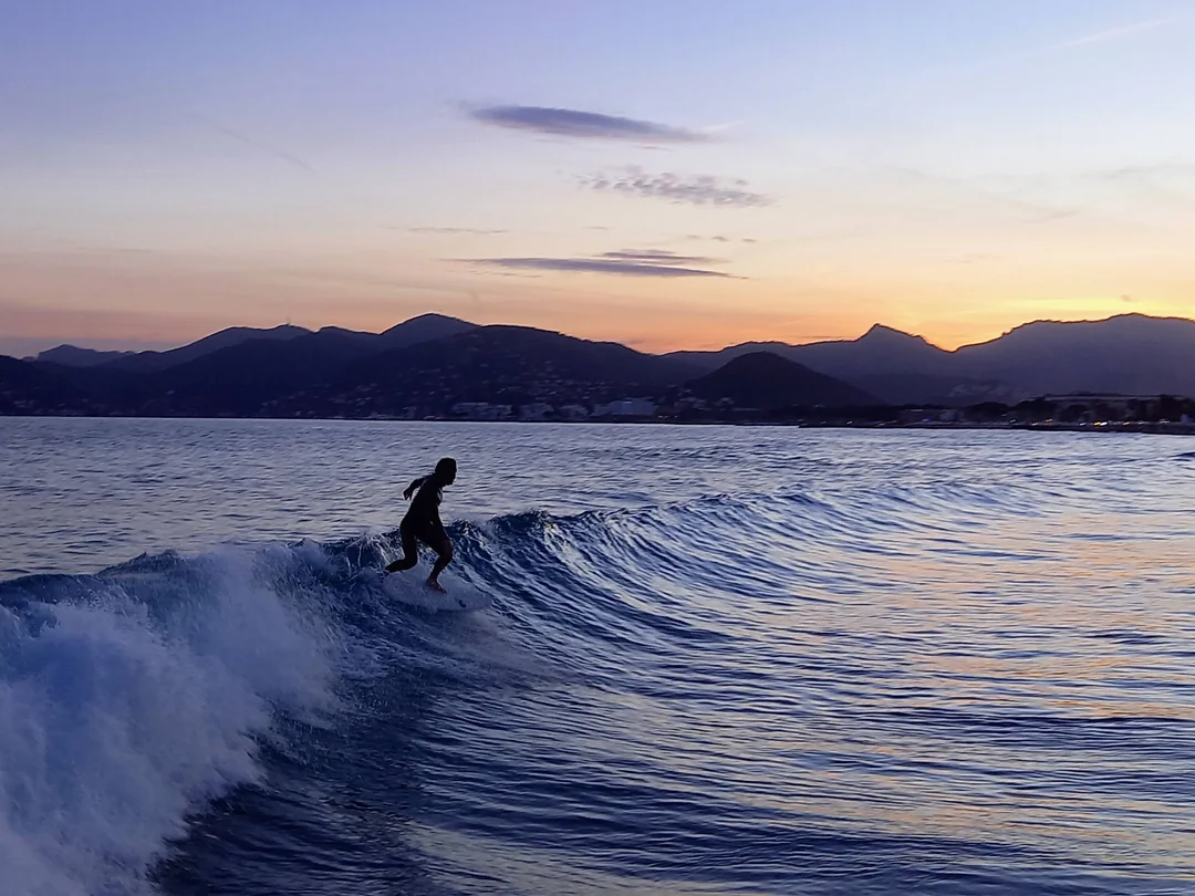 Lo spot di Nice – Embouchure du Var si trova all’estremità occidentale della Baie des Anges, a ridosso dell’aeroporto Nice Côte d’Azur, in Francia (regione Provenza-Alpi-Costa Azzurra). È un ambiente urbano e comodissimo, affacciato su una baia ampia dove l’imboccatura del fiume Var disegna banchi sabbiosi mobili e piccole secche che, nelle giornate giuste, trasformano una costa spesso piatta in un beachbreak sorprendente. La posizione è strategica: si surfa letteralmente a pochi minuti dai terminal e dal centro commerciale Cap3000, con il quartiere di Saint-Laurent-du-Var alle spalle. L’accesso è diretto: si arriva costeggiando la Promenade des Anglais verso ovest e si parcheggia nella zona di Cap3000, al porto turistico o lungo i parcheggi della spiaggia. I passaggi pedonali portano rapidamente all’arenile; il setup varia tra sabbia e ciottoli con aree di scogliera e massi di protezione, quindi conviene osservare dove rompono i picchi e scegliere l’entrata più comoda. I servizi sono completi: bar e ristoranti sul lungomare, docce e bagni stagionali, noleggi estivi, surf shop e scuole distribuiti tra Nizza e Antibes. In alta stagione l’area è molto frequentata anche da bagnanti, kitesurfer e SUP, per cui è meglio arrivare presto. Il funzionamento è tipicamente mediterraneo: lo spot prende mareggiate da sud e sud-est, con fetch generato da depressioni nel Golfo di Genova o da sciroccate stabili. Dopo il picco di vento, quando la brezza ruota da nord o da ovest, le pareti si puliscono e la qualità cresce vistosamente. I banchi alla foce si riorganizzano spesso dopo le piene del fiume: nelle buone giornate si formano peak definiti che aprono sia a destra sia a sinistra, con piccole canalizzazioni che facilitano il rientro. Vicino ai massi e ai frangiflutti esterni, la destra tende a correre un po’ più a lungo; al centro baia compaiono anche sinistre più morbide, ideali per tavole voluminose. Le maree sono microtidali, ma una marea media aiuta a coprire le secche e a rendere più regolare il take-off. L’autunno e l’inverno sono i periodi più affidabili; in primavera ed estate lo spot offre finestre lampo post-vento, ottime per fish, funboard e longboard. Clima e mute: l’acqua scende di solito a 13–15 °C in inverno e sale a 23–25 °C in estate; l’aria spazia mediamente da 10 °C a 30 °C. Sono consigliate 4/3 mm con stivaletti nei mesi freddi (cappuccio nei giorni di maestrale forte), 3/2 mm in mezza stagione e shorty o top in neoprene in piena estate. L’atmosfera è cittadina e vivace: quando entra lo swell, la folla aumenta rapidamente ma lo spazio della baia consente di distribuirsi. Attenzione alle correnti di risacca vicino alla foce, ai detriti dopo piogge intense e al fondale misto che cambia spesso; osservare dieci minuti prima di entrare è sempre una buona idea.